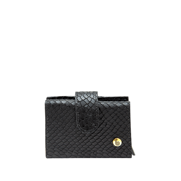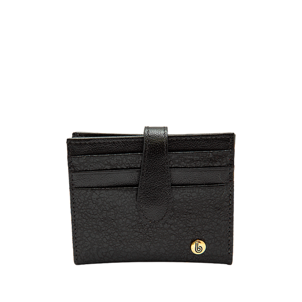 Portadocumentos con botón push de despliegue en cuero negro ónix