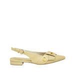 Sandalia de tacón con moño decorativo en cuero oro nuevo