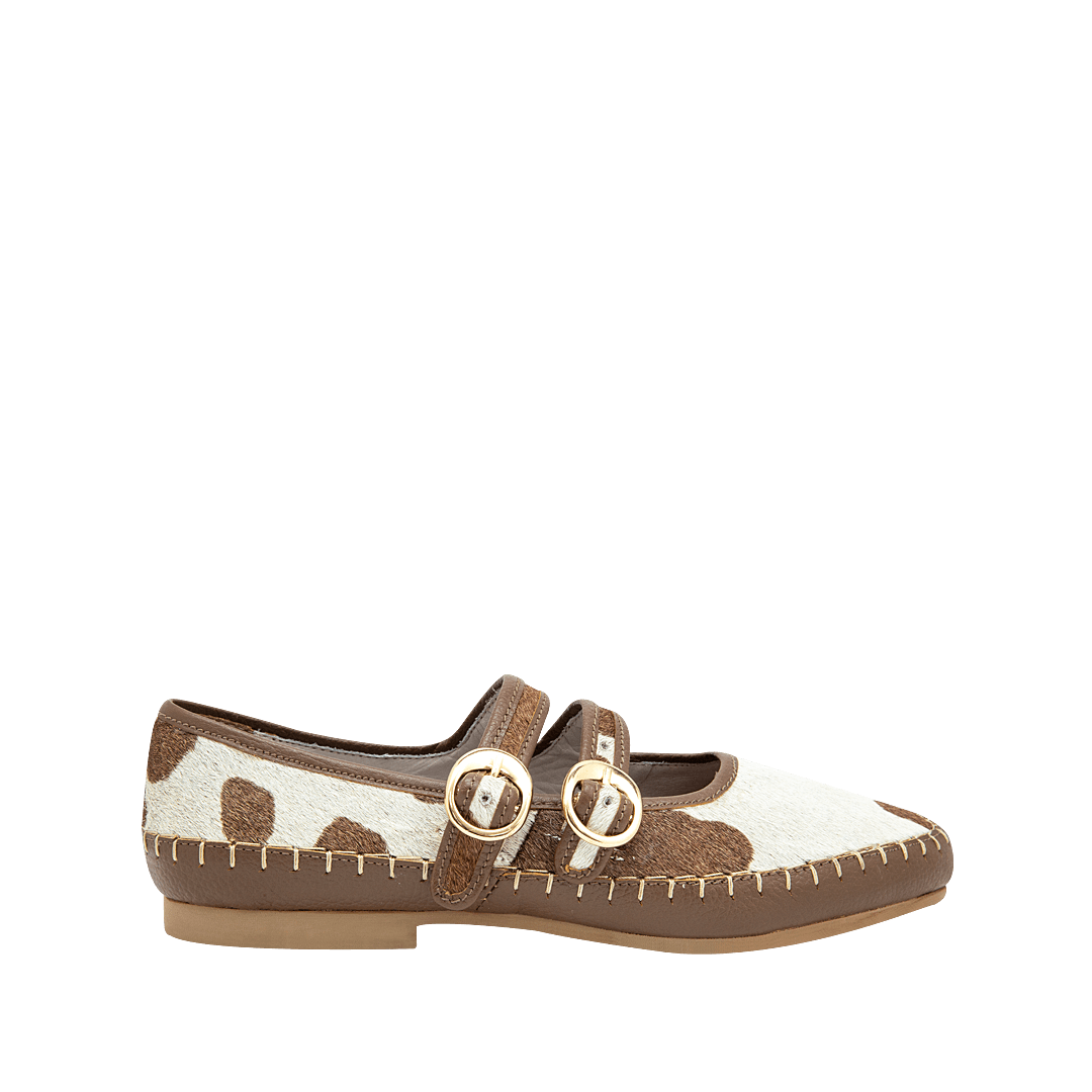 Baleta en cuero estampado vaca (el acabo del fondo es natural y puede variar según la piel)