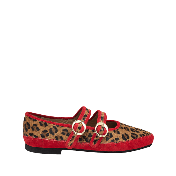 Baleta en cuero estampado animal print (el acabo del fondo es natural y puede variar según la piel)