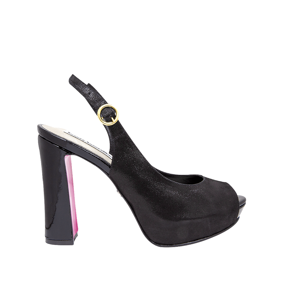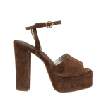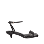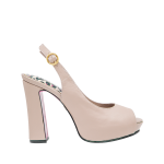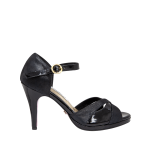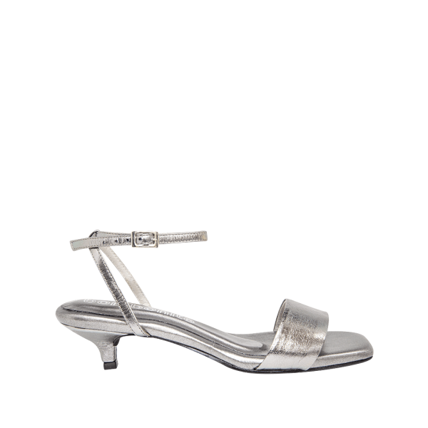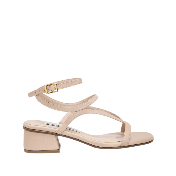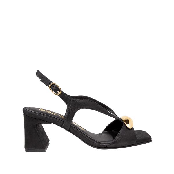Sandalia de tacón con moño decorativo en cuero oro nuevo