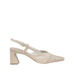 Tacón tipo stiletto en rafia y cuero blanco crema por negro ónix