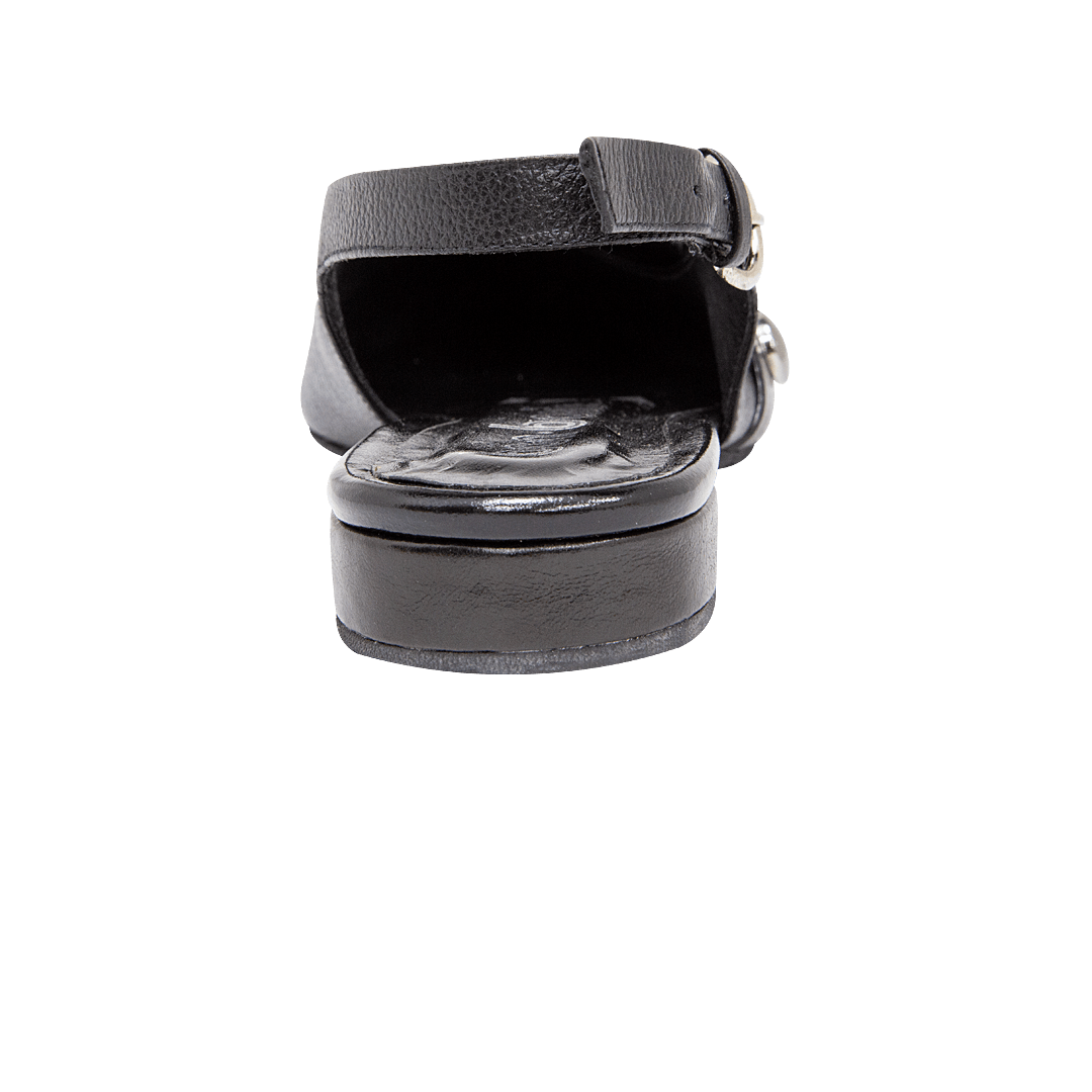 ¡Dale estilo y comodidad a tu caminar! • Baleta para mujer con taches decorativos en cuero granito color negro ónix • Acabado en punta • Hebilla lateral para mejor ajuste • Mini tacón forrado en cuero • Hecho a mano en Colombia.