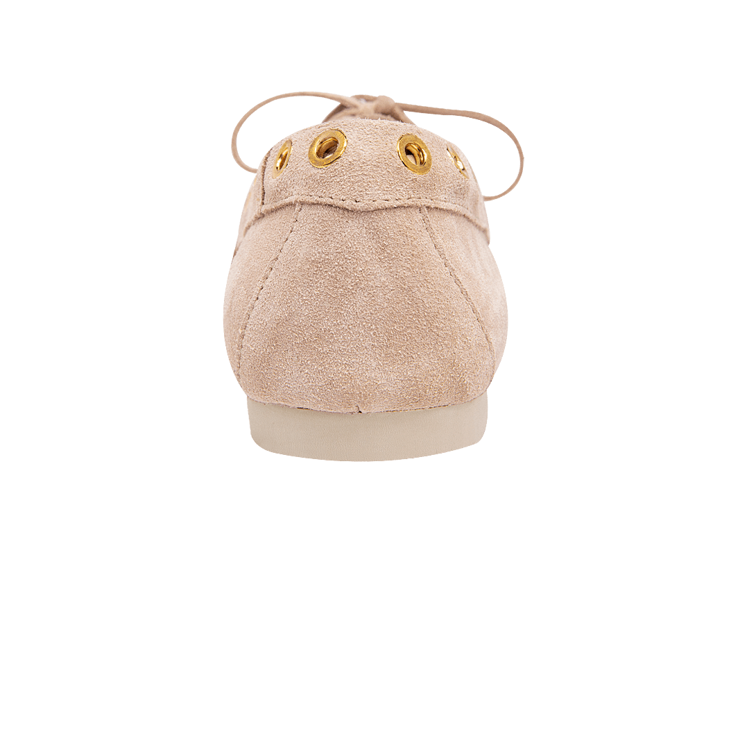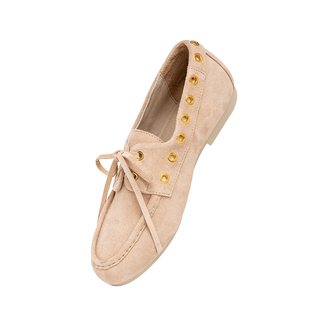 ¡Tu mejor aliado! • Náutico para mujer en cuero carnaza con ojaletes decorativos color nuage • Cordón en cuero • Acabado en punta ovalada • Mini tacón en caucho • Hecho a mano en Colombia.
