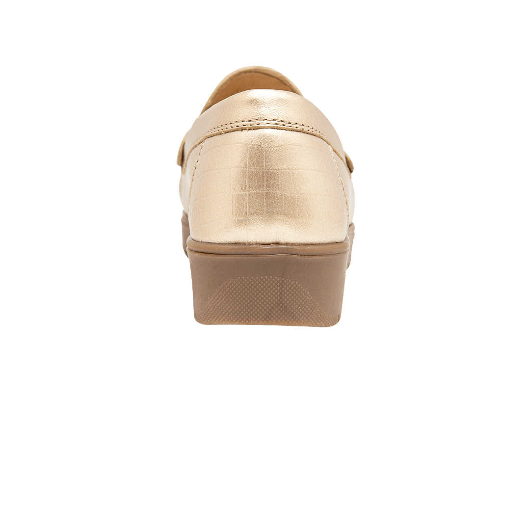 Mocasín en cuero metal arena