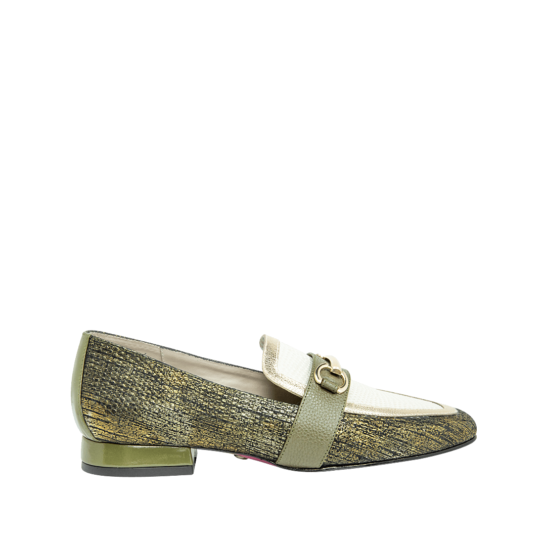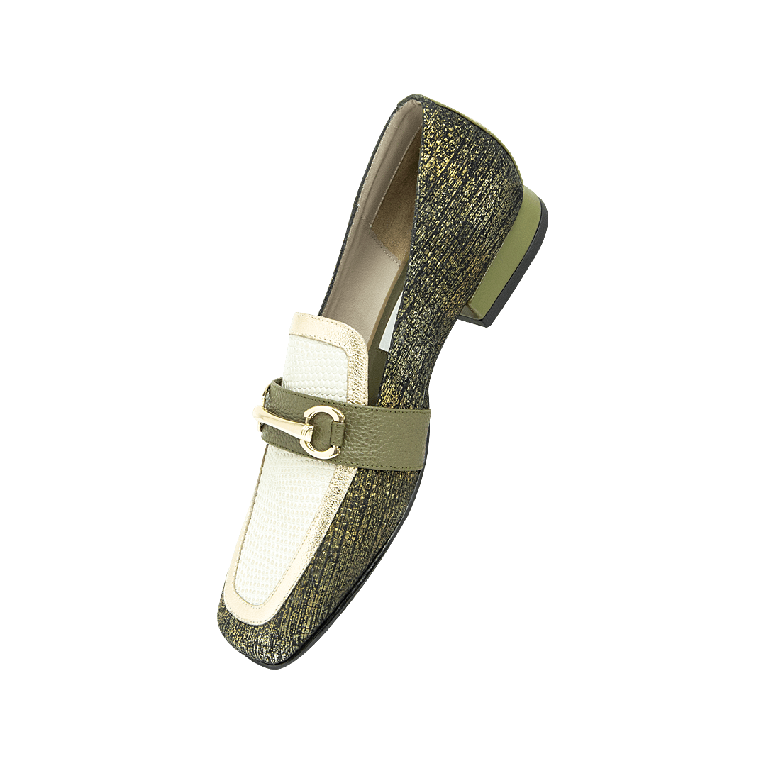 ¡Dale un toque delicado a cada look! • Mocasín en cuero grabado y granito color negro ónix • Bridón en la capellada • Tacón forrado en cuero • Acabado en punta cuadrada • Hecho a mano en Colombia.