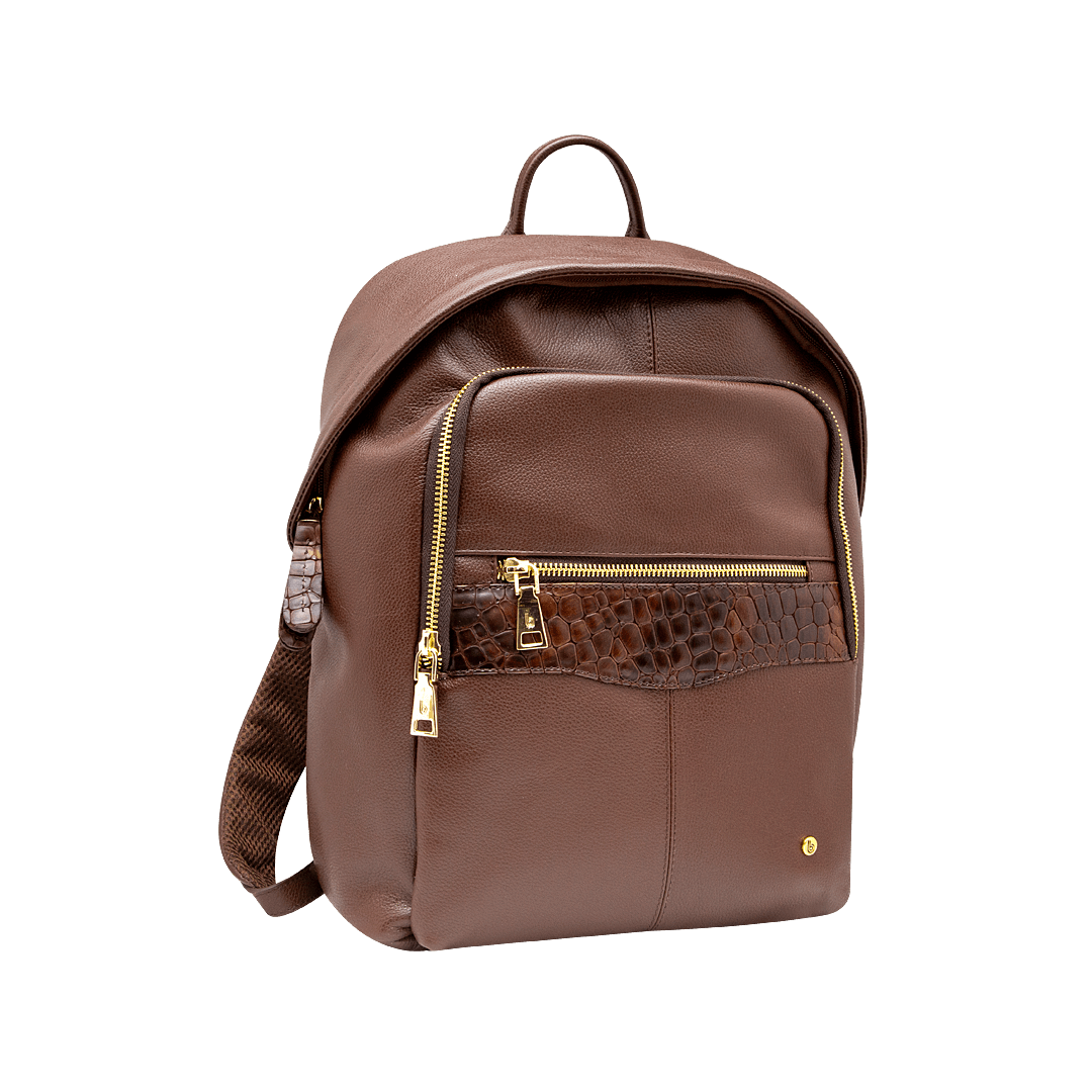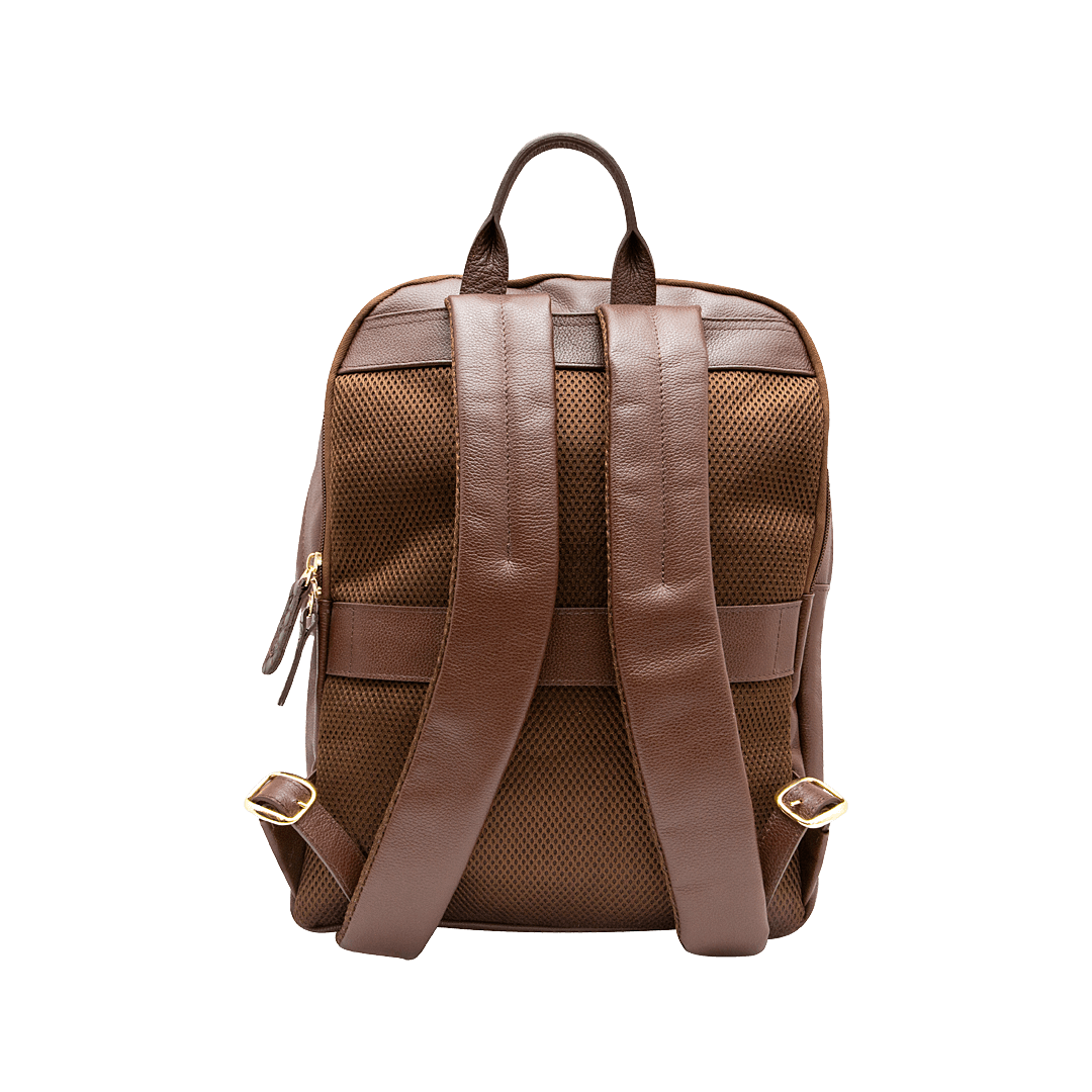 ¡Perfecto, espacioso y lleno de estilo! • Morral para mujer en cuero granito color café • Dos compartimientos externos con cierre mediante cremallera • Compartimiento para portátil • Bolsillo interno con cremallera • Dos bolsillos auxiliares • Cargadera de 79 cm • Hecho a mano en Colombia.