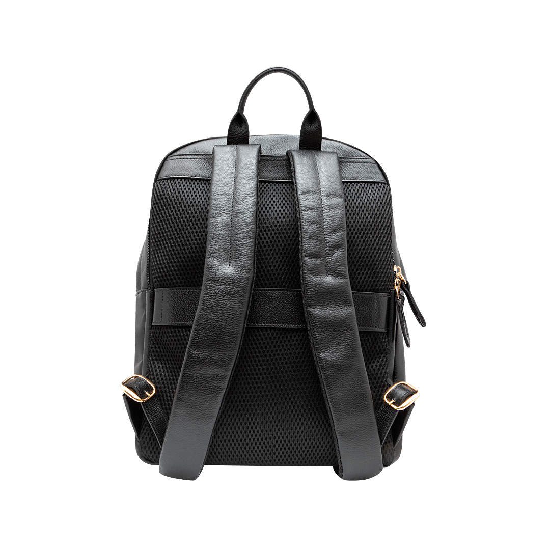 ¡Perfecto, espacioso y lleno de estilo! • Morral para mujer en cuero granito color negro ónix • Dos compartimientos externos con cierre mediante cremallera • Compartimiento para portátil • Bolsillo interno con cremallera • Dos bolsillos auxiliares • Cargadera de 79 cm • Hecho a mano en Colombia.