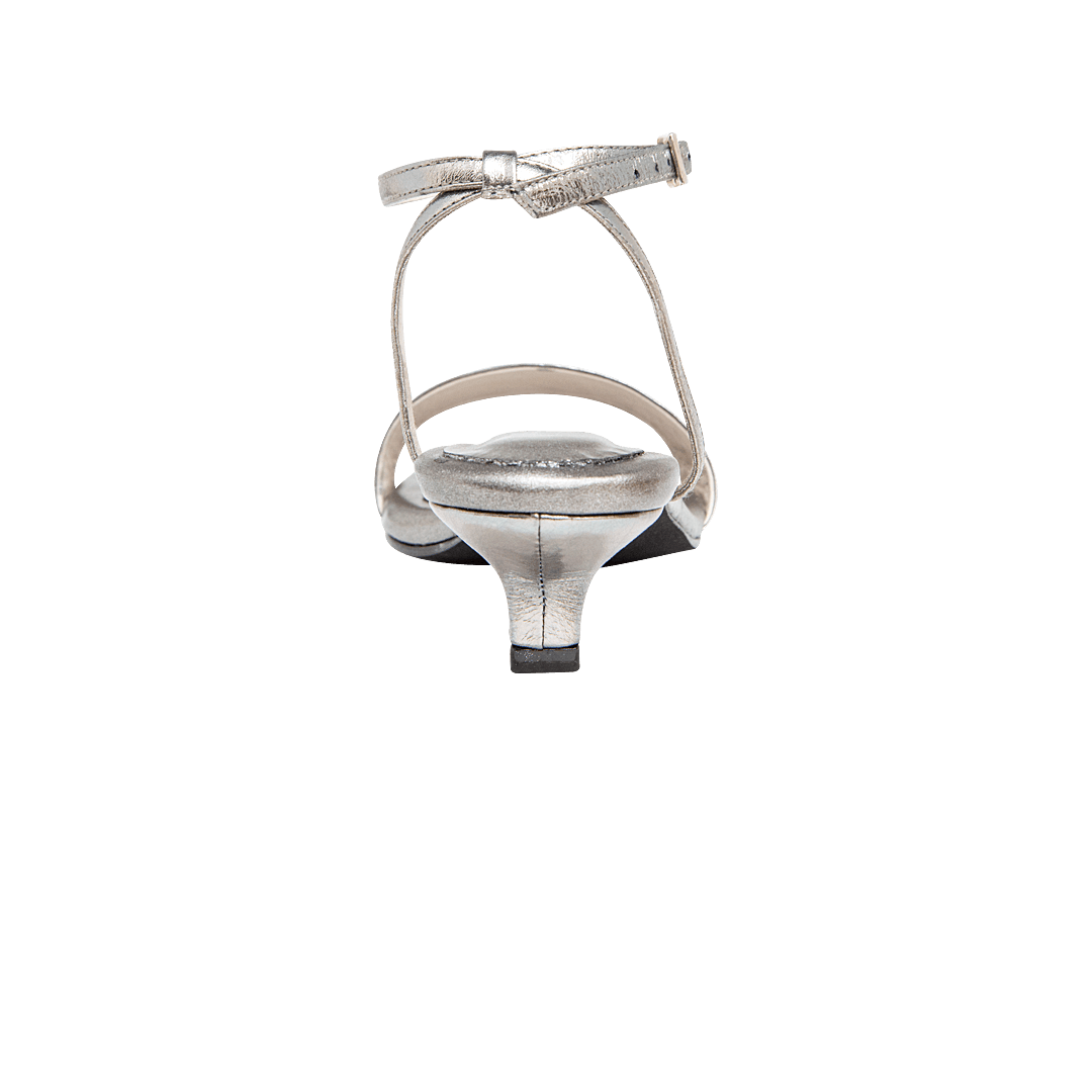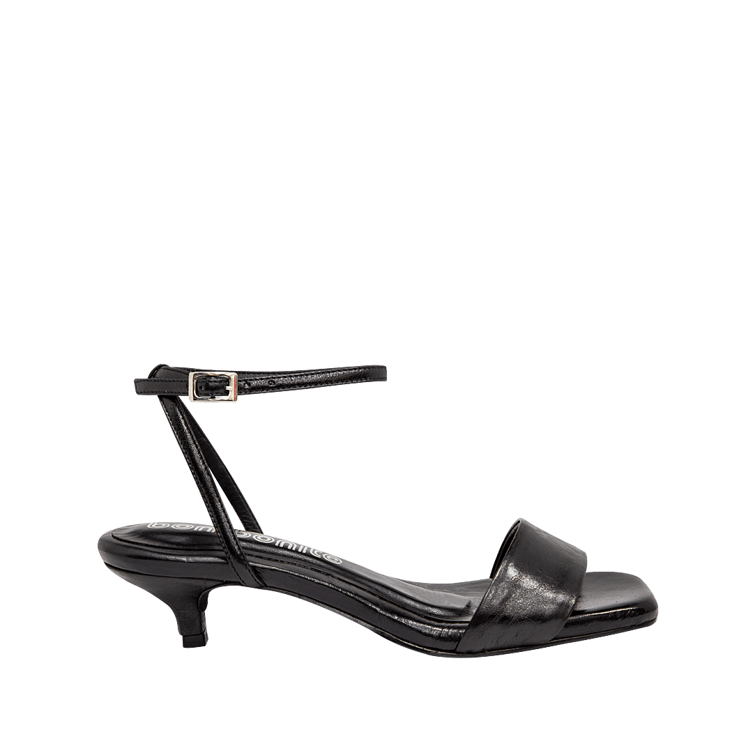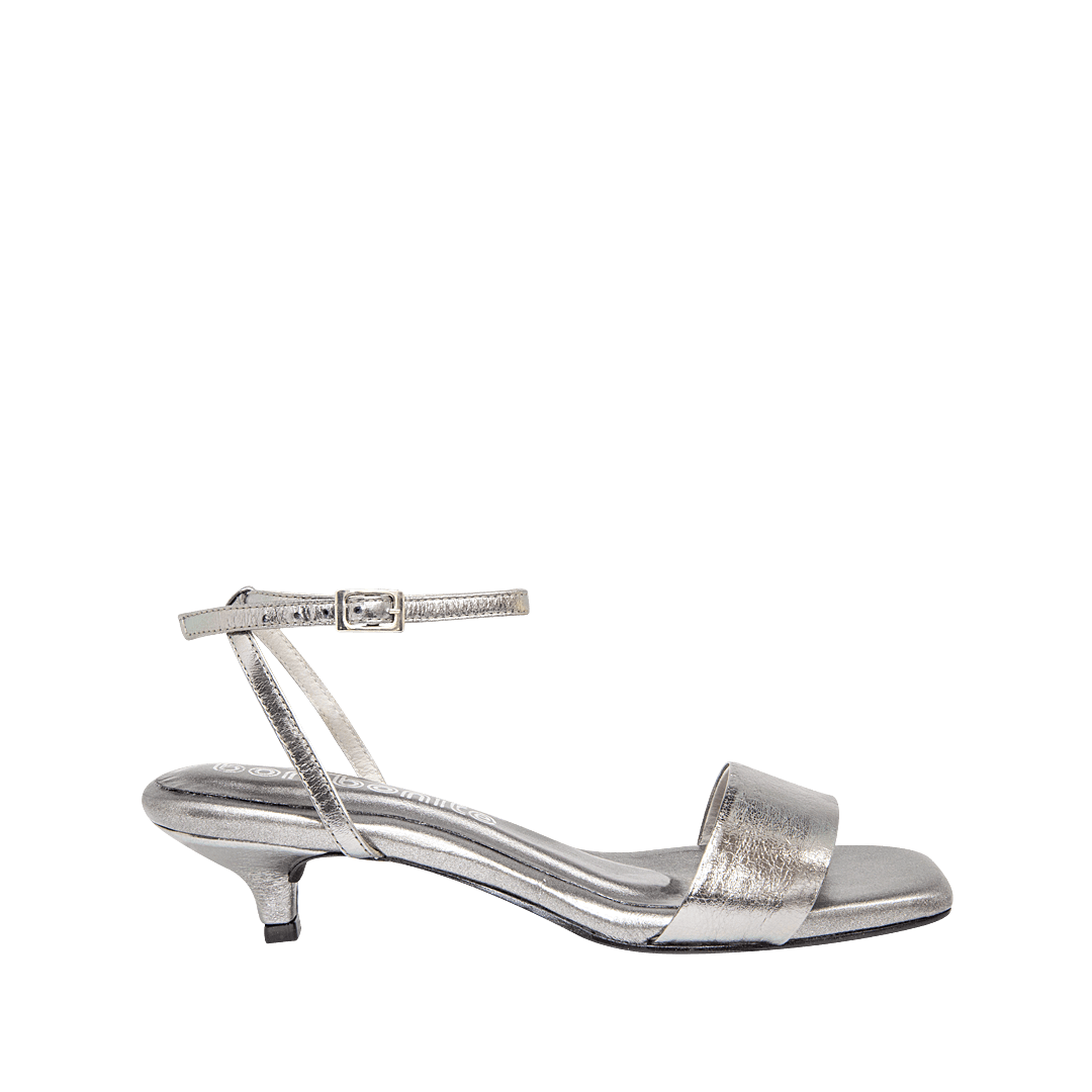 ¡Esta sandalia fue hecha para acompañarte en cualquier ocasión! • Sandalia de tacón para mujer en cuero color fusil • Acabado en punta cuadrada • Amarre al tobillo tipo pulsera • Hebilla lateral para mejor ajuste • Tacón kitten forrado en cuero • Hecho a mano en Colombia.