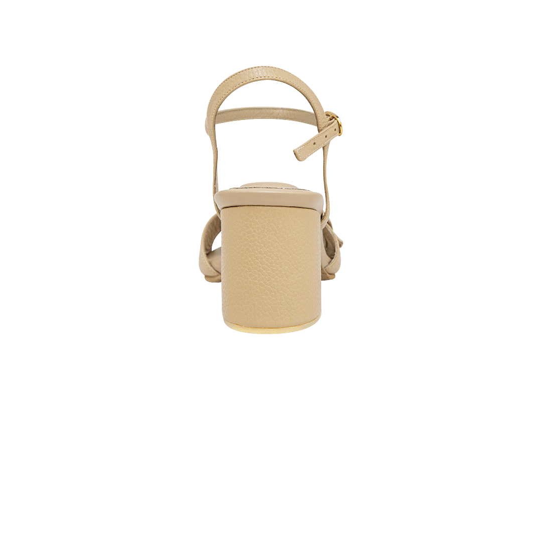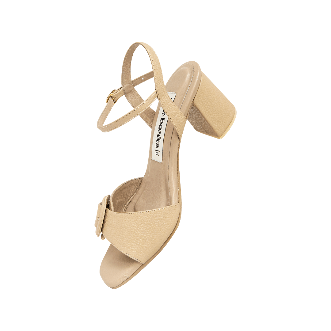 ¡Para acompañarte en cualquier ocasión! • Sandalia de tacón para mujer en cuero granito color pardo • Acabado en punta cuadrada • Hebilla en la capellada y lateral para mejor ajuste • Tacón geométrico forrado en cuero • Hecho a mano en Colombia.