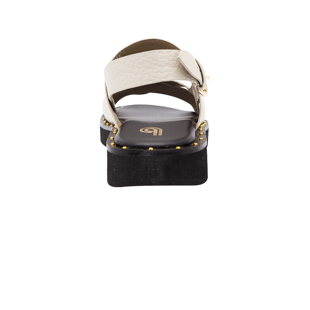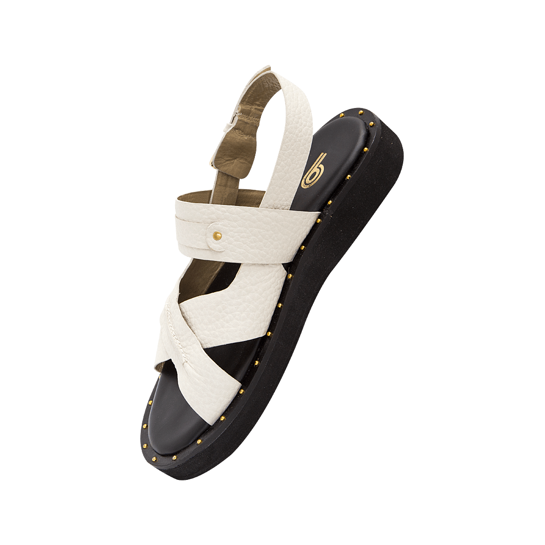 ¡Elegancia atemporal! • Sandalia en cuero color concha • Capellada en cuero entrelazado • Talón descubierto • Hebilla lateral para mejor ajuste • Forro en piel • Plataforma de 2 1/2 cm con taches decorativos • Suela en eva • Hecho a mano en Colombia.