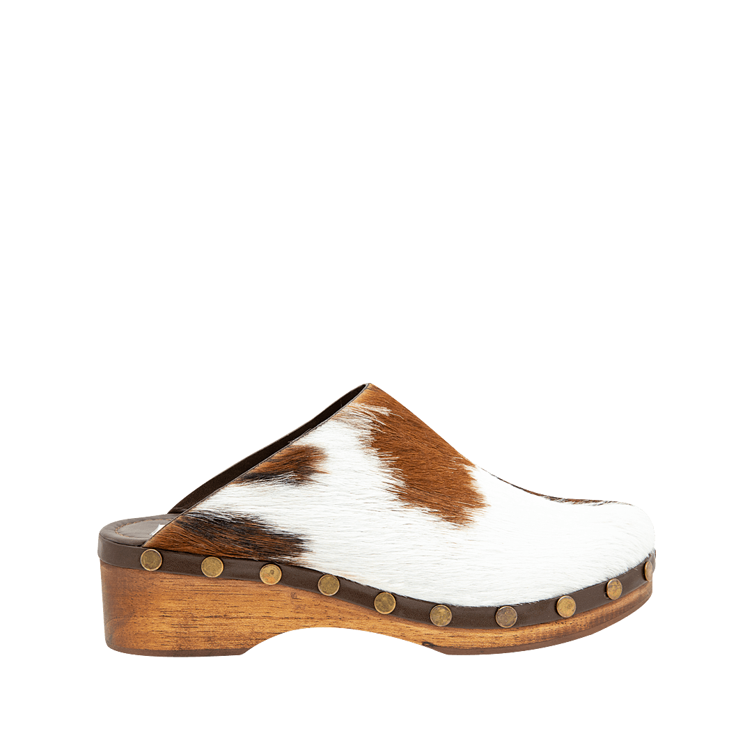 Zueco con taches en cuero carnaza almendra